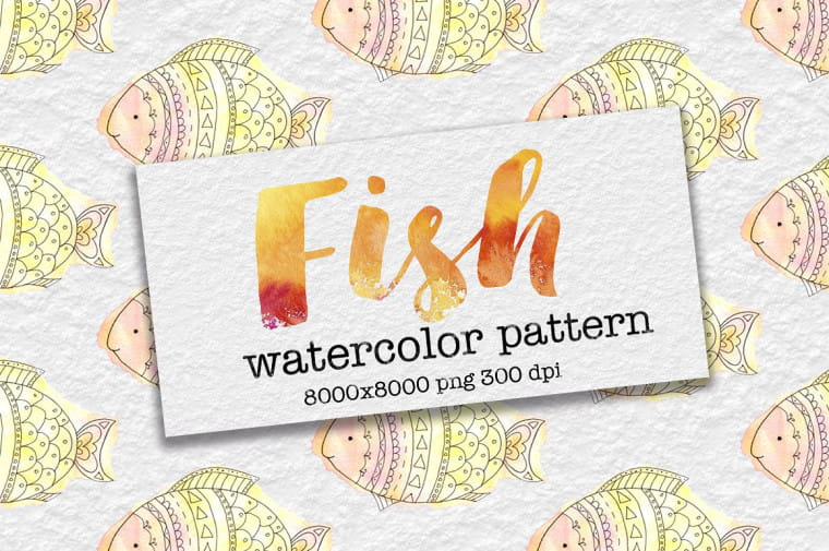 Watercolor Funny Fish Pattern -
