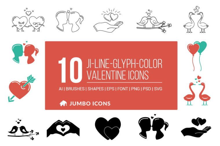 10 Free Romantic Icons eps, psd, abr, ai, svg, csh file