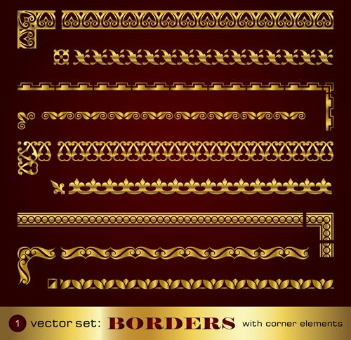 Golden border and corner decorative elements vector ai file -