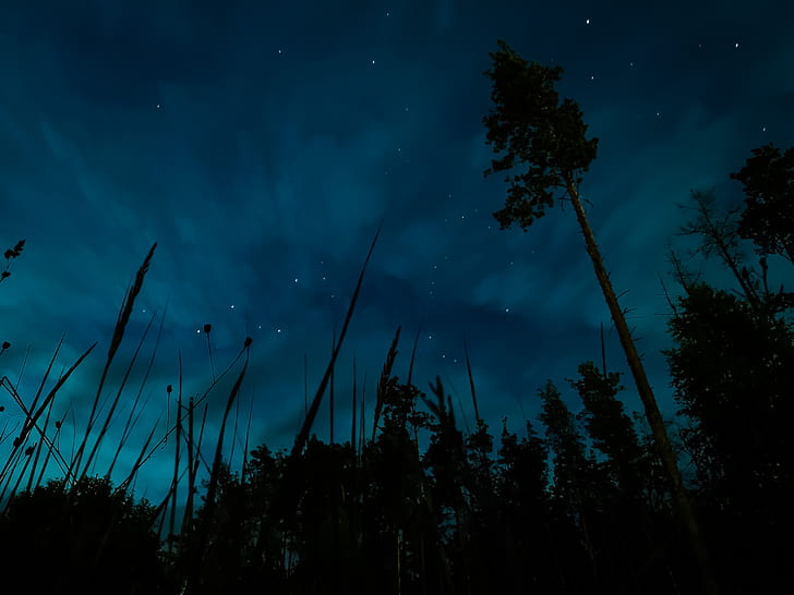 silhouette of trees during nighttime -