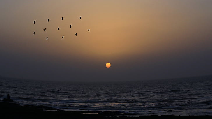 flying birds over body of water -