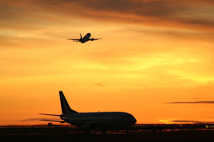 gray and orange airplane wing above clouds under blue sku during daytime -