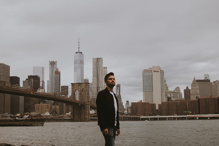 man in blue button-up long-sleeved shirt laughing during daytime -